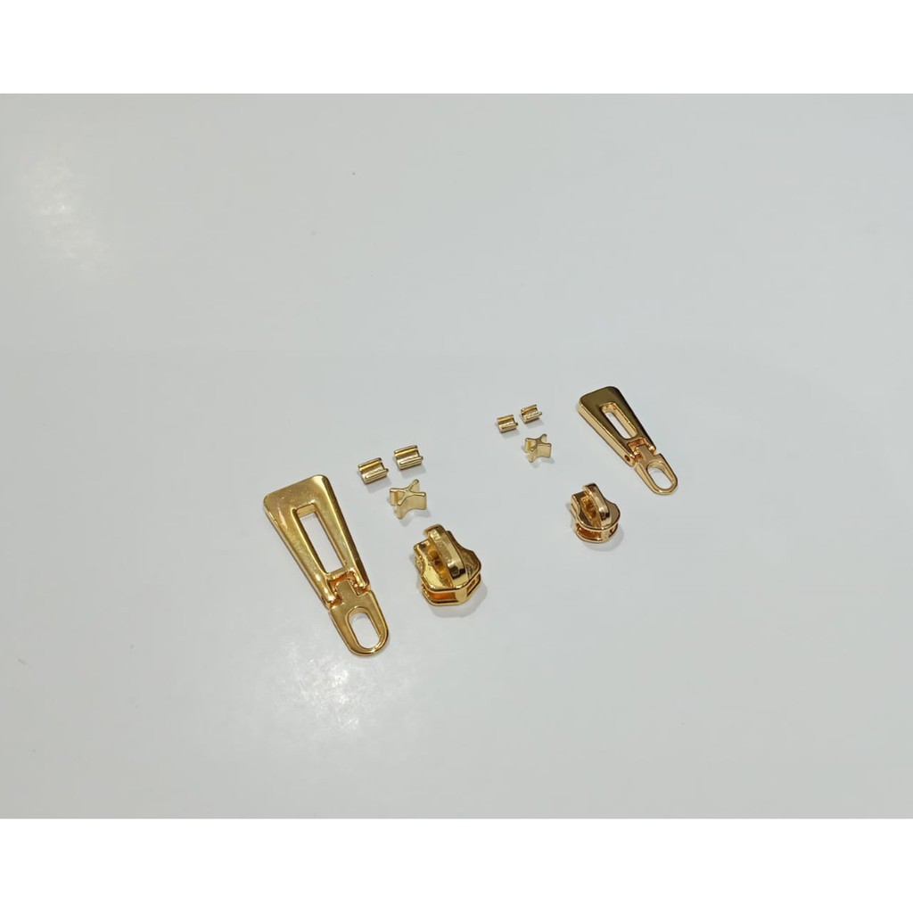 Aksesoris 1 Set (Kepala zipper, Handle foldable, stopper)aksesoris import from korea.dengan kualitas premium .Tersedia warna -Gold -Nickel/Silver Dengan Ukuran:- 3mm- 5mmNote* Untuk pemesanan harap tanyakan Stock terlebih dahulu dikarenakan stok yang tersedia terbatas, jika sudah check out tetapi barang kosong maka kami akan menginformasikan melalui chat. untuk pengiriman setelah barang ready kembali, yaitu kurang leih 7-10