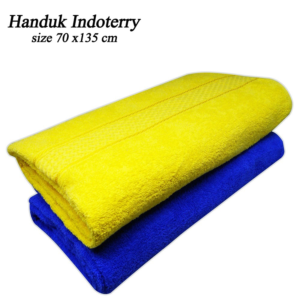 "Handuk Mandi Indoterry 70 x 135 cm Random WarnaSpesifikasi Produk:Handuk Mandi Indoterry 70 x 135 cm Random WarnaMerk : INDOTERRYBahan : 100% Combed CottonUkuran Produk : 70 x 135 cm ( Handuk Besar )Ketebalan : 380 gr/m2Warna : Sesuai GambarBerat : 300 gramIsi Kemasan :1pcs - Handuk Mandi Indoterry 70 x 135 cm Random Warna• Bahan yang lembut untuk kulit• Ukuran handuk yang besar cocok untuk orang dewasa/remaja• Berdaya serap air yang tinggi sehingga mudah mengeringkan seluruh tubuh• Desain warna dan motif yang cantik cocok digunakan untuk suvenir• Bahan awet• Harga ekonomis• Kualitas terjaminMohon tuliskan pilihan warna pada kotak keterangan, apabila warna yang diminta tidak ada/anda tidak menuliskan keterangan warna saat checkout maka kami akan mengirimkan Warna Random (warna acak). Terima Kasih :)Selagi ada promo, Yuk segera miliki produk berkualitas ini, sebelum kehabisan.#handuk #handukmandi #handukdewasa #handukjumbo #handukmandilembut #handukremaja #handuksuve