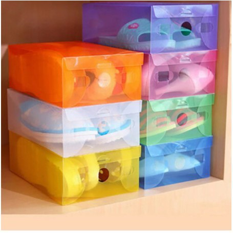 Fungsi kotak sepatu transparan sbb:- Merapikan lemari sepatu Anda.- memudahkan memilih sepatu yang ingin Anda pakai.- Dapat dilipat kembali jika tidak terpakai, sehingga menghemat tempat.- Menghindari sepatu dari debu dan kotoran, serta lubang ventilasi agar sepatutidak lembab.Spesifikasi:Bahan : PPModel : regular dengan bukaan atas.Size: 28x18x