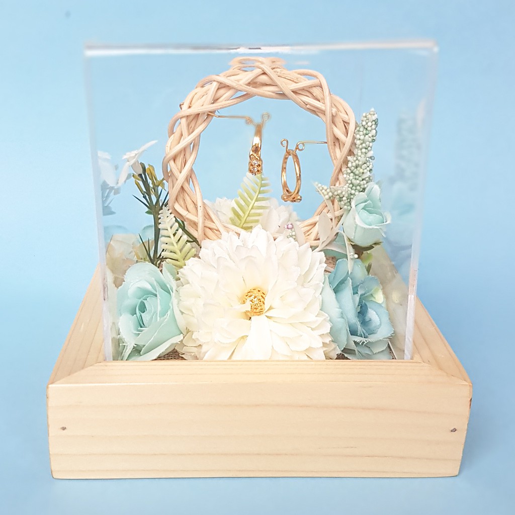 Ring Box Aurellia Series | Kotak Cincin Kekinian[RB0108]Sebelum Melakukan pemesanan Ring Box, Mohon untuk baca dulu ya, karena kami tidak berharap untuk mengecewakan pelanggan kami. Selama produk Ring Box masih ada postingannya berarti stock produk tersebut ready, jadi bisa di order lansung.Kotak Cincin dari Kayu hadir untuk kamu!Dalam balutan rustic looking dengan kombinasi rangkaian warna bunga yg sesuai keinginan kamu yaa..Di dalam Kotak Cincin rustic ini Sudah termasukHiasan & Dekorasi beserta Properti lain Diantaranya :1. Ukuran Box - Dalam : 10*10cm - Luar : 13*13cm2. Bahan : Natural Wooden3. Bunga Artificial4. Bunga Dan Daun Sintetis5. Dan Bahan-Bahan Rustic Lainnya.6. Tutup menggunakan acrylic uk 2 mm, tinggi 8 cm.7. Packing - Dus + Bubblewrap 10K - Triplek + Bubblewrap 15Kitu sudah full set ( kalian akan mendapatkan ring box sesuai gambar yang anda lihat) REAL PICT.PERHATIAN- Untuk Melihat Katalog Ringbox Kita Bisa Langsung Mengunjungi Profile Toko Kami- Pengiriman 1-3 Hari Setelah Pemesanan (Sesuai antrian Pesanan)- Rangkaian bunga sesuai pic (Bisa request warna bunga nya)- Untuk Model Bunga Dapat Berubah, Karna kita selalu update Model Bunga Terbaru- “sertakan nama pasangan dan tanggal acara” di kolom pesan sebelum chec