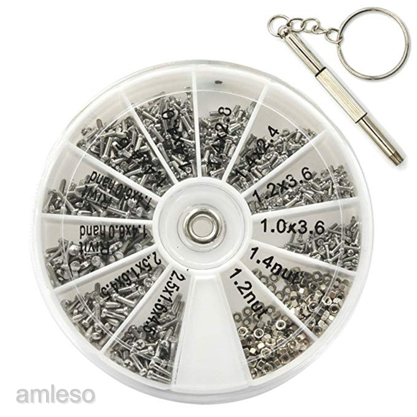 Description:Approx 600pcs stainl steel screws nuts kit in 12 small separate grids with mark.With a micro screwdriver, perfect for repairing eyeglasses, sun glasses, watches, clos, electronics, jewelries, cell phones, etc.Organized visible st case with the size information on the lid help you find what you need quily.NOTE: Be careful when opening the lid to avoid different sizes of screws and nuts spilling and mixing.Material: Stainl steel Size: Approx. 7.5 x 7.5 x 2cm/2.95 x 2.95 x 0.79inchPaage Includes:600pcs Eyeglasses Screws Nuts with ScrewdriverNote:Pse allow 1-2cm(0.4-0.8 inch) size difference due to measurement. Thank