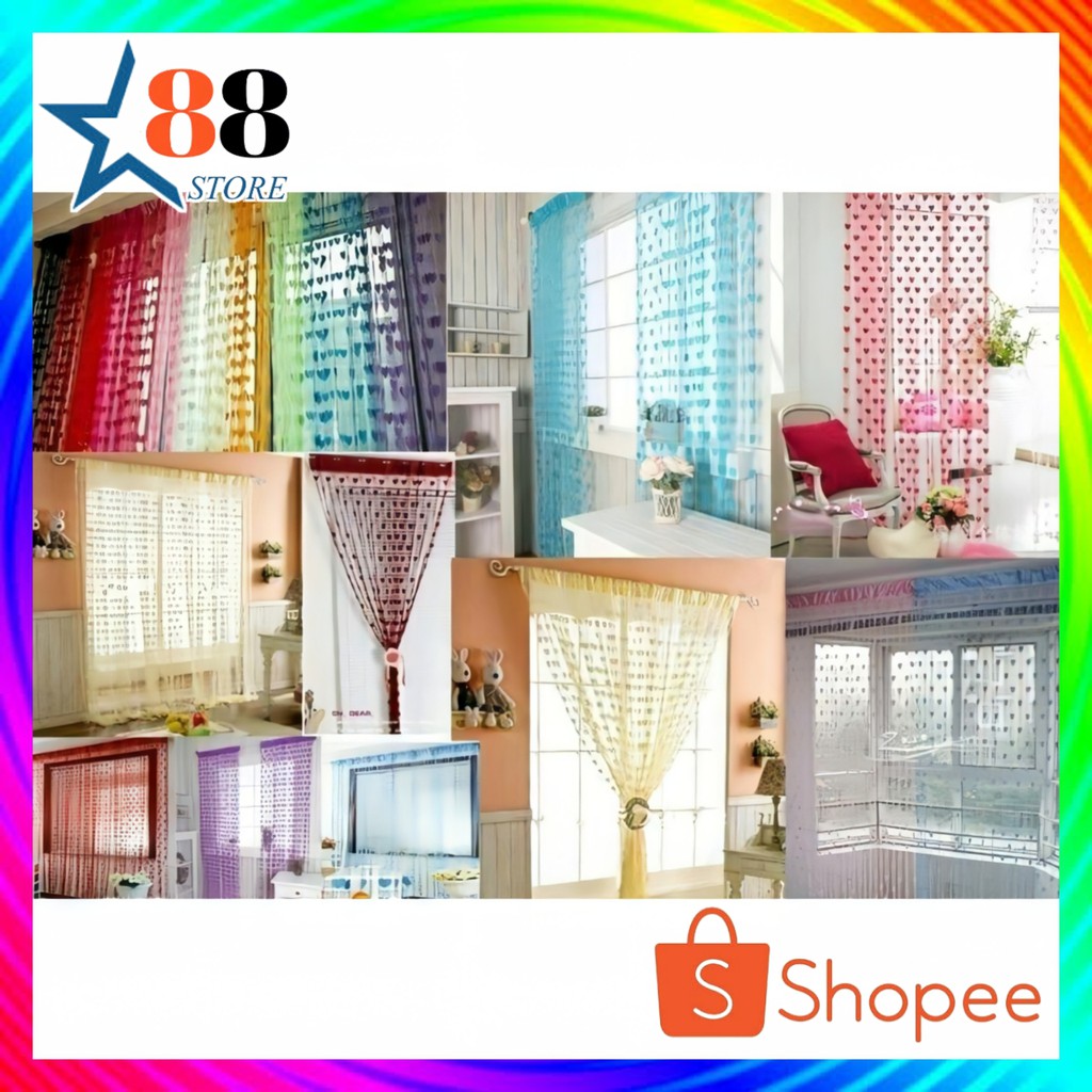 Tirai cantik berbentuk juntaian benang, benang tebal loh bukan benang tipis yang untuk jahit baju. Untuk motif polos benangnya lebih tebal sehingga tidak mudah putus.Tirai dapat digunakan sebagai :- Tirai / vitras jendela- Pembatas ruangan- Tirai pintu- Hiasan