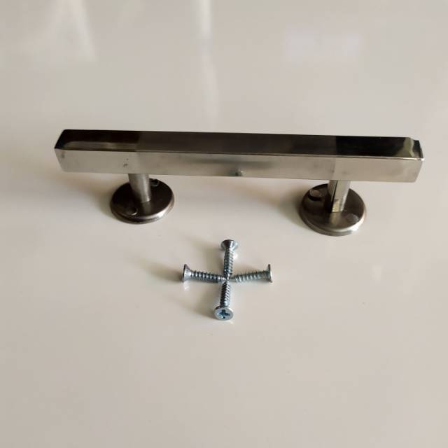 Ktk 10 cm dof kotak 10 satin glossyHarga barang ini bijianPipa kotak Diameter 1 x 1 cmBahan handle dari pipa kotak stainless steel 203Ketebalan pipa kotak 0,5 mmFinishing doff glossy kombinasi Tinggi full 3 cmDiameter lepek sepatu kaki bulat 2,2 cmDiameter bulat cagak kaki penyangga 0,7 cm / 7 mmBahan cagak penyangga dan sepatu kaki lepek adalah dari stainless blendenPlus baut skrup besi 4 bijiPanjang handle 10 cmBerat efektif per biji 30