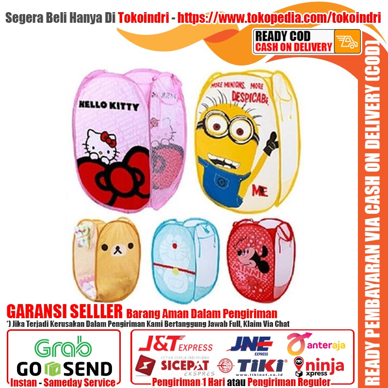 Random motifKeranjang pakaian kotor yang bisa dilipat dengan motif tokoh kartun yang terkenal dari Jepang, Hello Kitty.Ukuran: 32*48cmWarna: (sesuai gambar)Bahan: Kain Parasut + J