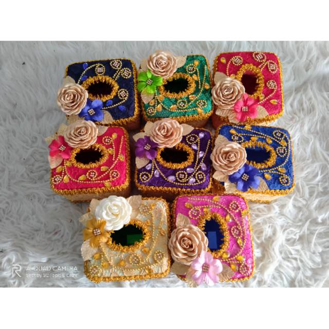 Kotak tisu kecil brokat di hias bu