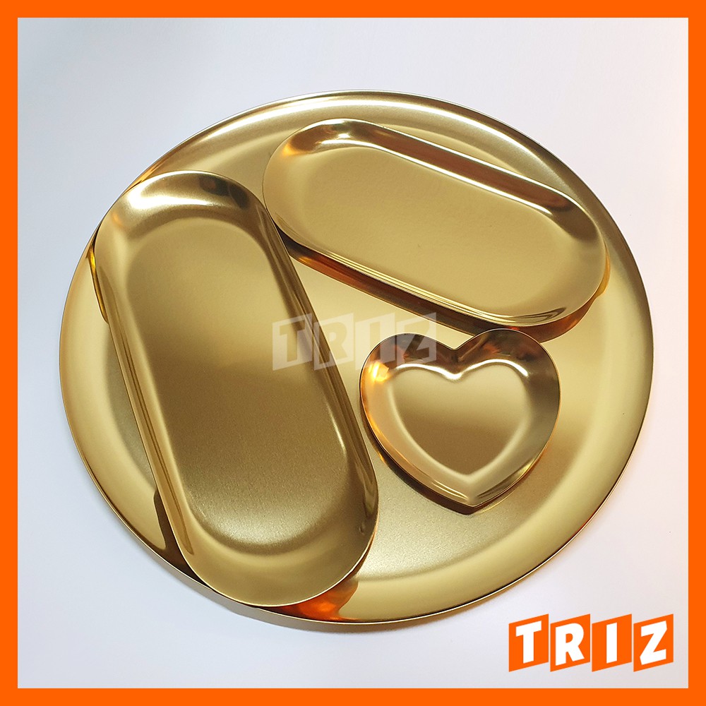 Name: Nampan Set Emas Gold Tray Metal Jewelry Organizer Storage Oval Plate