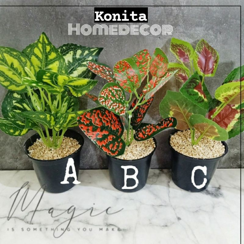 Hallo Kaka... :) Daun + Pot Hias Mini Lucu - Diameter Pot 8cm- Tinggi keseluruhan 21cm+-- High QualityAda 3 Varian A B CNote : Kasih keterangan Varian ya ka- Siap Membuat Ruangan Jadi Lebih Indah #Selamat Berbelanj