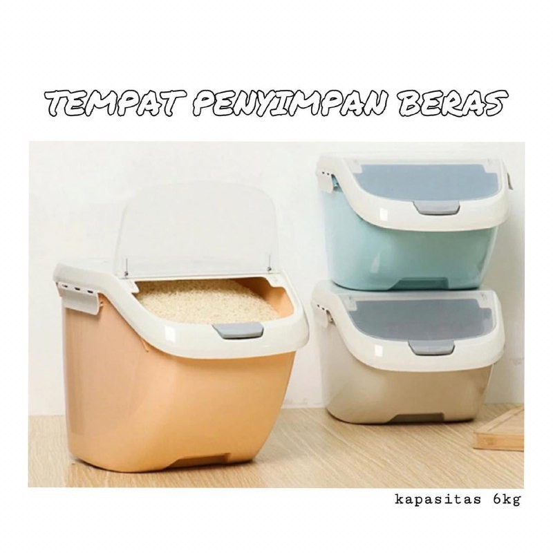 Tempat Beras/ Rice Box/ Kotak Penyimpanan Serbaguna/ Wadah Beras 6kgSpesifikasi:Bahan = Plastik PP BPA FREEKapasitas = 6 kgBerat = 600 gramDimensi = 35 x 26 x 22 cm (berat volume 3kg)Pilihan Warna:Krem, Pink, BiruJIKA WARNA YANG DI MINTA KOSONG AKAN KAMI KIRIM WARNA RANDOMKotak penyimpanan ini dirancang untuk menyimpan beras, makanan atau barang kering Anda dan menjaganya agar tetap kering, segar dan bersih. Cocok untuk menyimpan kacang-kacangan, biji-bijian, sereal atau makanan hewan peliharaan Anda, kotak penyimpanan ini efisien dan praktis untuk dapur Anda.Fitur:☑️Bahan terbuat dari plastik PP Food Grade, BPA Free, tidak beracun, tidak berbau.☑️Dapat digunakan sebagai tempat beras atau untuk menyimpan berbagai makanan.☑️Desain gesper dengan cincin segel ganda sehingga anti bocor.☑️Mampu menghindarkan kontaminasi makanan dengan bakteri atau kelembapan.☑️Menjaga makanan tetap segar.☑️Bagian tutup transparan sehingga memudahkan melihat barang-barang di dalamnya☑️Ada juga tombol klik untuk membuka tutupnya.☑️Desain modis dan sederhana, ringan nyaman untuk dibawa dan menghemat tempat.☑️Ada roda bawah dan ada pegangan agar mudah dipindahkan.☑️Desain stackable (bisa ditumpuk).☑️Ekonomis dan ramah lingku