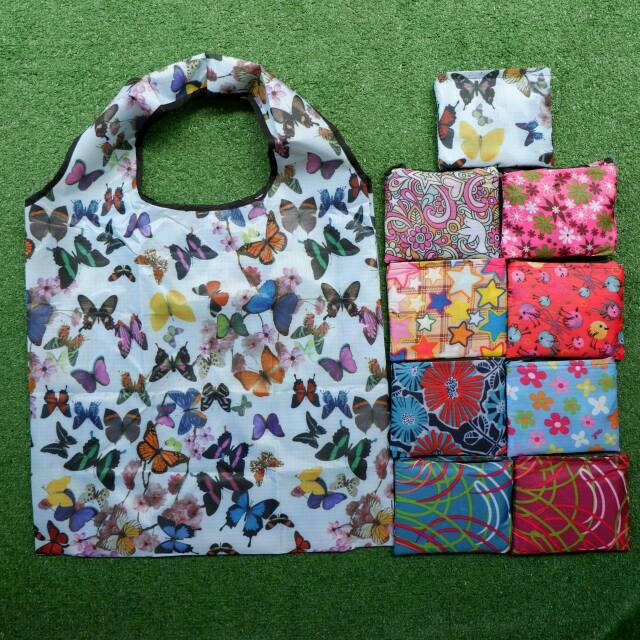 Shopping bag besarUkuran 44 x 44 x 7 cmBahan parasut anti airBerat 100 gram .Shopping bag sedangUkuran 40 x 37 x 6 cmBahan parasut anti airBerat 70 gram..Pada saat order, tulis kode motifnya .Tulis juga kode motif cadangan.Jika tidak, maka dikirim ra