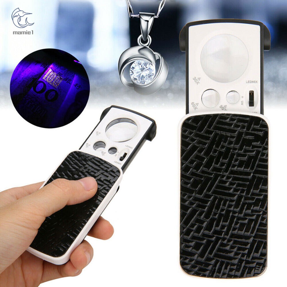 Name: Kaca Pembesar Saku Model Slide Out 30/60/90x Dengan Lampu Uv Led Untuk Perhiasan Berlian