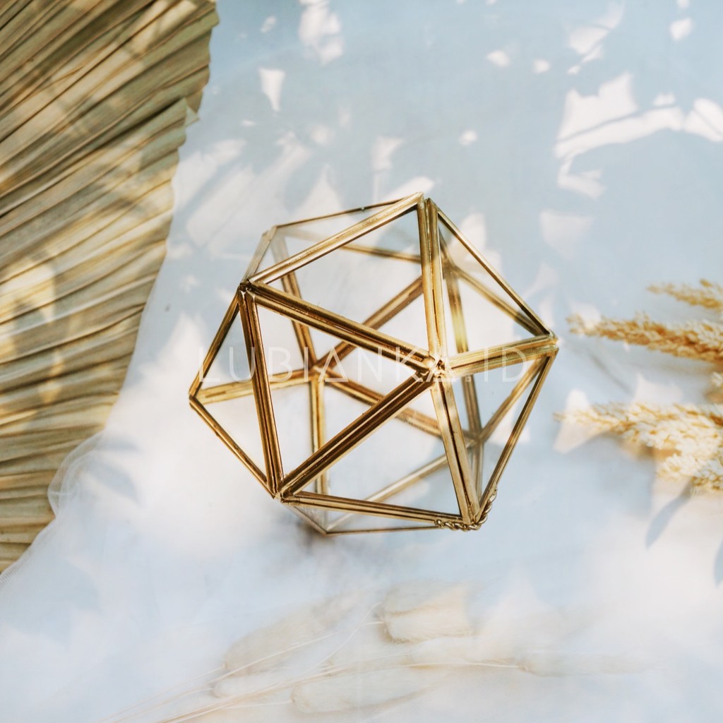 Follow Our IG @lubianka.idTerra Ringbox Ball TriangleBisa di gunakan untuk tempat cincin lamaran, tuangan, pernikahan, tempat aksesoris dan pajangan meja. Di buat 100% handmade langsung oleh pengrajin kami dengan kualitas bahan terbaik dan hasil yang memuaskan.Material :- Kaca tebal 3mm Good Quality- Kuningan Tebal Good Quality Ukuran :1. D 12 x 13 ( Seperti di foto )Proses Produksi :- Setelah melakukan pembayaran maka kami akan proses untuk segera di produksi.- Proses produksi akan memakan waktu sekitar 7-10 hari kerja ( bisa lebih cepat jika orderan tidak penuh )- Ukuran dan model bisa request tergantung kebutuhan dan Model kesukaan pelanggan Photo asli di ambil oleh seller, produk yg dikirim sama dengan di Photo.* Kami menerima order dlm jumlah banyak dan model custom model. untuk tanya² bisa langsung chat kamiTerima Kasih#kotakcincin #ringbox #kotakmahar #terrarium #terarium #terrariumkaca #terrariumbox #tray #traykaca #storage #tempatmahar #kotakmahar #kotakperhiasan #kotakkalung #kotakmaskawin #boxmahar #kotakcincin #tempataksesoris #wedding #cincin #perhiasan #kotakkaca #tempatkosmetik #tempatmakeup #bridesmaids #ringbox #ringboxkaca #ringbearer #ringcase #weddin